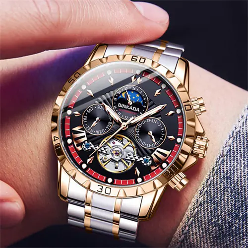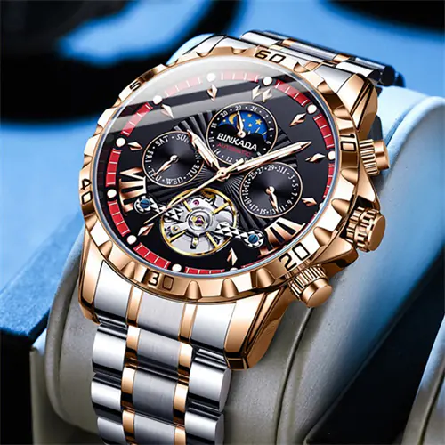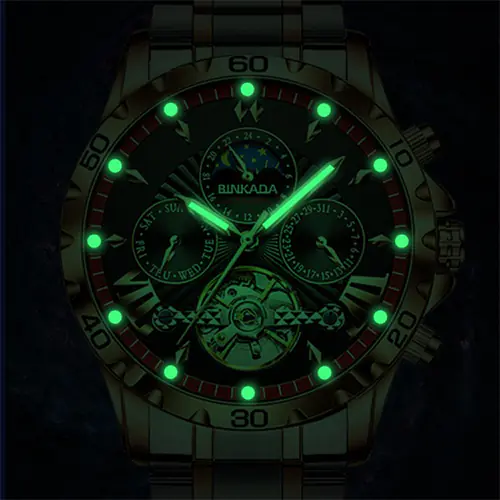 【Automatic Watches for Men】This is tourbillon watches for men automatic.The rotating automatic flywheel mechanical dial shows the beauty of mechanical design. The multi-functional dial has a date and 24-hour day